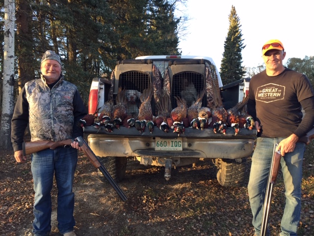 Guy and George St.Amant with their Pheasants taken in Mistatim, Sask.